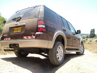 שטח? עם מרווח גחון מצומצם ובסיס גלגלים ארוך (289 ס"מ), ברור שהאקספלורר אינו מתיימר לתפקד כיורד שטח קשוח. הוא מסוגל אולי ליותר מזה, אבל לא נתן לנו הרגשה נוחה מעבר לשבילים מהודקים וקצת חולות. אתגרים מיוחדים? נדרשת המון תשומת לב כדי למנוע חיכוך מיותר של חלקים תחתונים. אפשר כמובן לשפר את מרווח הגחון בדרכים שונות, אך ספק אם יכולת הכביש תשאר טובה כשהייתה.
