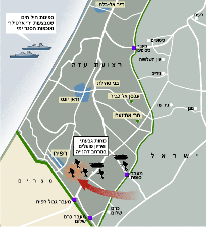 2:00 צה"ל פותח במבצע "גשמי קיץ": היעד הראשון הוא פעולה במרחב דהנייה בדרום הרצועה באמצעות כוחות חי"ר ושיריון תחת שם הקוד "שליט דרומי".