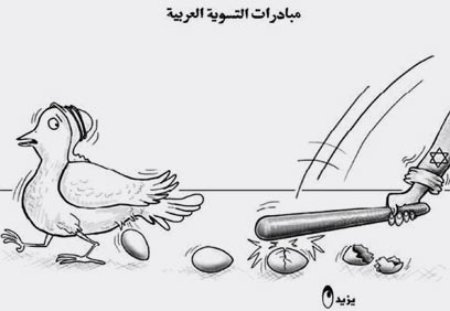 לפני מספר ימים התבטאו שורת מרואיינים בכלי התקשורת הערביים, המייצגים את הדעות הקרובות לדעותיה של הממשלה הפלסטינית, ואמרו כי ישראל היא זו שמטרפדת כל יוזמה. אותו מאייר העביר את המסר גם בקריקטורה שאייר, בה נראה נבוט ישראלי שובר כל ביצה של יוזמה מדינית שמטילה יונת השלום הערבית: