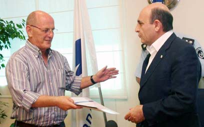 פלד מגיש למופז את מסקנות הוועדה (צילום: גיל יוחנן)