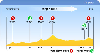מחר ייערך קטע מעבר לפאתי האלפים, ממונטלימאר לגאפ, למרחק של 180.5 ק"מ. הקטע כולל ארבע עליות מדורגות (שתיים מקטגוריה 3 ושתיים נוספות מקטגוריה 2) ושני מיאוצי ביניים. גם קטע זה, בדומה להיום, יאפשר לקבוצת בריחה (או לרוכב סולו) שלא מסכנת משמעותית את המובילים לתפוס את הפלוטון אדיש, בעיקר בלל שהמחצית הראשונה של הקטע יחסית קשה ובמגמת עליה. הרוכבים גם יודעים שזהו הקטע האחרון לפני יום המנוחה וההרים, כך שסביר להניח שנראה רוכבים וקבוצות שטרם הוכיחו את עצמם. החלק השני של הקטע יחסית ישר או במגמת ירידה, פרט לעליה אחת לפני הסיום. הסיום עצמו נגמר בירידה, מה שמבטיח שאם הפלוטון יגיע ביחד ייערך עוד ספרינט המוני, במאבק על הניקוד של החולצה הירוקה.