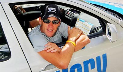 לאנס ארמסטרונג ברכב של דיסקאברי. לא ממש עזר (צילום: רויטרס)