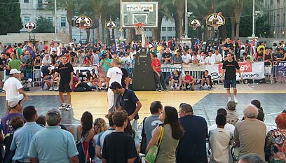 כמו בשכונה: 160 קבוצות של 3 על 3, תושבי קו העימות ומייקל לואיס מ'האלופה' הגיעו לטורניר כדורסל רחוב בכיכר ספרא. הרוח הפריעה לתחרות השלשות, אבל בתחרות ההטבעות היו כמה דאנקים עוצרי נשימה