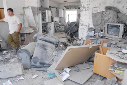 הפגיעה בנשר. רקטה בסלון הבית (צילום: גלעד הר שלג)