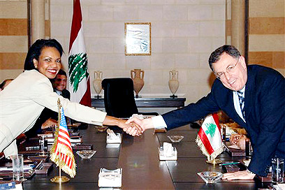 סניורה ורייס בפתח פגישתם בלשכתו של רה"מ לבנון, היום (צילום: איי.פי)