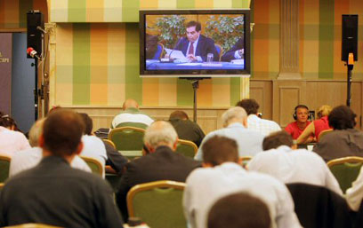 העיתונאים האיטלקים מאזינים להחלטת בית הדין (צילום: רויטרס)