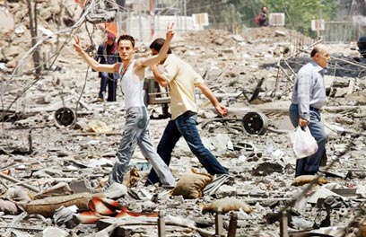 חורבות ביירות. נסראללה הסביר: איני אשם (צילום: איי.פי)