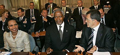 רה"מ איטליה פרודי, אנאן ורייס, היום בוועידת רומא (צילום: רויטרס)