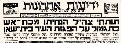 כותרתו הראשית של עיתון "ידיעות אחרונות" יום לאחר ירי הקטיושות, 17 בספטמבר 1968