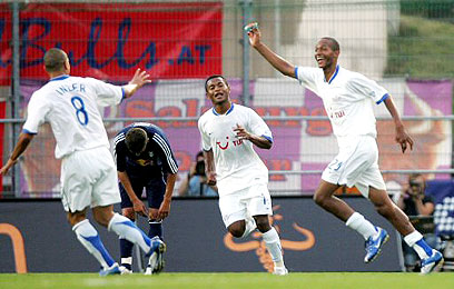 חוגגים על האוסטרו-גרמנים. שחקני ציריך מול זלצבורג (צילום: רויטרס)