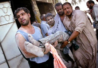 אש מרגמות נורתה לעבר המרכז המסחרי בשכונת קאראדה בעיר, ומיד לאחר מכן התפוצצה במקום מכונית תופת. השבוע נהרגו עשרות עיראקים בפיגועים במקומות שונים בבירה העיראקית שראתה החודש גל של התקפות חסר תקדים