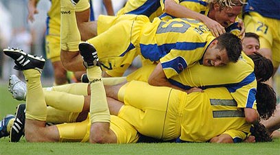 דומז'אלה חוגגת בעונה שעברה, אחרי שהדיחה את אשדוד (צילום: איי פי)