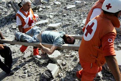 פינוי הפצועים מהמבנה בכפר כנא, הבוקר (צילום: רויטרס)