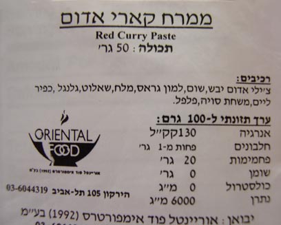 בני הזוג רכשו בסניף הרבוע הכחול בקניון איילון שברמת גן מחית קארי אדום (המוצר נמכר גם ברשת שופרסל. א.י), המיובאת לארץ מתאילנד על ידי חברת אוריינטל פוד אימפורטרס בע"מ. על אריזת המוצר, מספרים השניים, הופיעה מדבקה המציינת שהמוצר כשר פרווה בהשגחת הרבנות הראשית לישראל. בנוסף, הופיע עליה גם הכיתוב "למהדרין מן המהדרין - השגחת הבד"ץ, חוג חתם סופר, פתח תקווה".