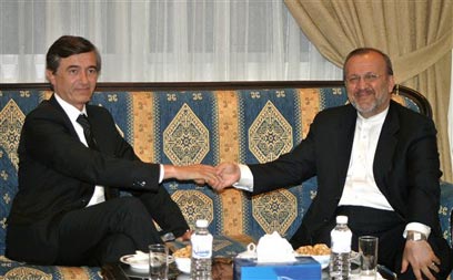 מותאקי עם שר החוץ הצרפתי פיליפ דוסט-באלזי, אתמול (צילום: איי.פי)