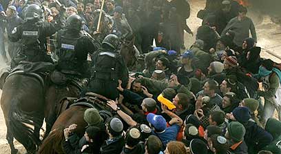 Many agreed to leave peacefully, but security forces also found themselves clashing with those who refused to do so. The pullout's most violent altercation took place at Amona, as thousands of settlers and right-wing activists clashed with IDF and police troops. The three-and-a-half scuffle ended with 200 casualties, including some 80 security forces' personnel and MK Effie Eitam (National Union).