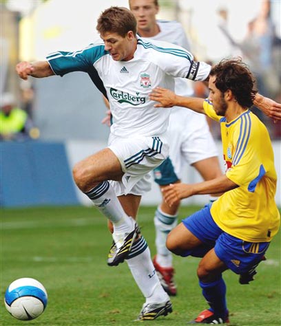 סטיבן ג'רארד חוזר לפעילות מול רומרו, אמש (צילום: איי פי)