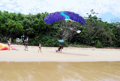 נפרדנו למחרת בצחוק גדול והמשכתי ל-Mission beach כדי להגשים עוד מיני חלום: צניחה חופשית. הדרך היתה כל כך קסומה וכל כך ירוקה, שהייתי ב"היי" עוד הרבה לפני הצניחה. מיניבוס צבעוני של חברת Paul’s parachuting הגיע לאסוף אותי. האחראית נתנה לנו למלא טפסים סטנדרטיים. "צניחה חופשית היא ספורט מסוכן", נכתב שם. "תאונות עלולות לקרות ואכן קורות. התאונות יכולות להסתיים בפציעה קשה או במוות". או קיי, זה לא צחוק. ובטח לא סטנדרטי. אמא'לה. "אני מצהיר שבמקרה של תאונה לא תהיה לי או למישהו מטעמי כל תביעה כנגד החברה". לרגע היד מהססת. מחשבה נוספת מזכירה לי כמה שנים חלמתי לצנוח, ואם כבר, אז כאן, בגלל הנוף יוצא הדופן ובזכות ההקפדה של האוסטרלים על בטיחות. אחרי הכל, אם יש מדינה שמתמחה בספורט אקסטרים, אני נמצאת בה עכשיו.