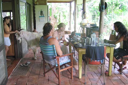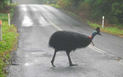 למחרת לקחתי איתו טרמפ. "אני צריך לעבור רגע דרך חברים", הוא התנצל. בדרך חצה את הכביש יצור גדול וכחול. זהו הקאסוארי, עוף ענק שאינו יכול לעוף. Mission beach נבנתה בתוך שמורת קאסוארי, מה שמסביר את שלטי האזהרה הרבים באזור. זוג נחמד עם שלושה כלבים, שני ילדים ותרנגול אחד קיבל את פנינו. "את מכירה את אלברט?", שאלה הבחורה שנראתה כבובת חרסינה. "בערך, הכרנו אתמול". "לא אלברט הזה", היא אמרה. מהפינה הגיח עז לבן ושעיר והתקרב אלי. "אלברט הזה. הוא מאוד אוהב נשים, את תראי שהוא יריח את הכתף שלך, יסניף את השיער ואז יריח את הכתף השנייה". אחרי דקה, בעודי לוגמת קפה, אלברט שיחק בדיוק לפי התסריט.