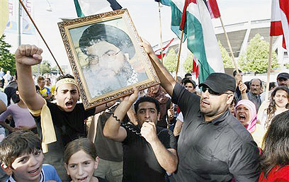 המפגינים הניפו גם תמונות של מנהיג החיזבאללה (צילום: איי פי)