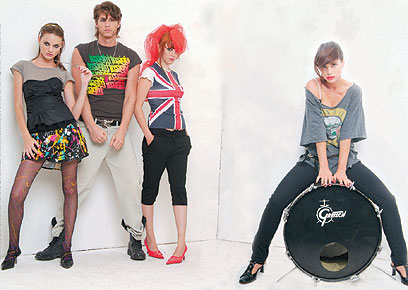 מורן - חולצת "גאנז אנד רוזס": אוסף פרטי. מכנסיים: טופשופ, 469.99 שקל. נעליים: בנות, 690 שקל. חגורה: רובי סטאר, 550 שקל. חזייה: טופשופ, 179.99 שקל. טניה - חולצת דגל ונעליים: שתיים (שינקין 38 בחצר, ת"א), 250 שקל. מכנסיים: ג'רי, 400 שקל. אור - חולצה: INSIGHT I ל"שפיץ", 199 שקל. חגורה: TNT, 119.90 שקל. מכנסיים: ליוויס, 599 שקל. נעליים: דיזל, 1,200 שקל. שרשרת: שוק בצלאל, ת"א, 50 שקל. מירי — חצאית: INSIGHT. ל"שפיץ", 169 שקל. קשת: קסטרו 29.90 שקל, נעליים: קליגולה, 369 שקל, מחוך: טופשופ, 239.99 שקל. חולצה: בנות, 198 שקל, גרביונים: פיקס,89 שקל