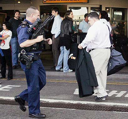 האבטחה המוגברת בשדה התעופה בלונדון (צילום: איי פי)