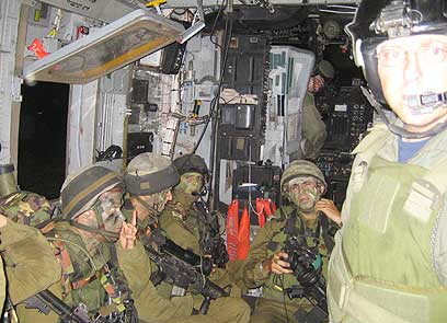 אני מצטרף לחפ"ק החטיבתי של חגי מרדכי. עולים בריצה ל"יסעור" שינחת בגל השני. שעה וחצי אחרי הזמן המתוכנן אנו ממריאים."אנחנו באיחור נוראי" אומר לי עומר, קצין צנחנים צעיר בקבע שעזב את לימודיו באוניברסיטה וביקש להצטרף לחבריו. "הירח עולה בעוד ארבע דקות וזה יחשוף אותנו למרחקים", הוא מודאג. כארבעים לוחמים יושבים על הספסלים ועל הרצפה עם טילים והמון נשק ותחמושת. לא כדאי לחשוב אפילו מה יקרה אם המסוק ייפגע. האנשים מזיעים מהחום, ההתרגשות והפחד. הכבש האחורי פתוח לרווחה תוך כדי טיסה, כדי שנוכל לזנק החוצה במהירות. האנשים שיושבים בחלק האחורי קשורים כדי שלא יפלו החוצה. מתחתינו חולפים האורות הבוהקים של יישובי הצפון. חציית הגבול - ואנו משייטים מעל השטח החשוך של לבנון.