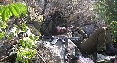 כשהאיר היום, יום ראשון בשבוע, אנחנו מוסווים עמוק בשיחים. משחזרים בלחש ובתדהמה את אירועי הלילה, פותחים קופסת טונה ואוכלים עם לחם. יש מים בחגור, אבל במשורה. הלוחמים שותים בגמיעות קטנות ונעים מאזור צל אחד למשנהו כדי שלא להזיע. לפתע נשמעת לידינו בתוך רעמי הארטילריה איוושה חזקה ואחריה פיצוץ רחוק. צוות נ"ט של אנשי המילואים משמיד משגר רב קני של קטיושות שיצא מאחד הכפרים. אחריו מושמד רכב משוריין של חיזבאללה בכפר אחר. "אילו רק היינו במקום שאליו אמורים היינו להגיע יכולנו לעשות את העבודה", אומר אחד מקציני החפ"ק של חגי. המח"ט נשאר קפוא פנים, מדבר בשקט עם המפקדה ומנסה לשכנע שיתנו לנו הלילה לנוע אל היעד המקורי. האישור ניתן. חגי מוריד פקודות לקראת הלילה. היום עובר לאט. חם. כמה מאנשי חטיבת המילואים סובלים מהתייבשות. הרופא מכניס להם אינפוזיה.