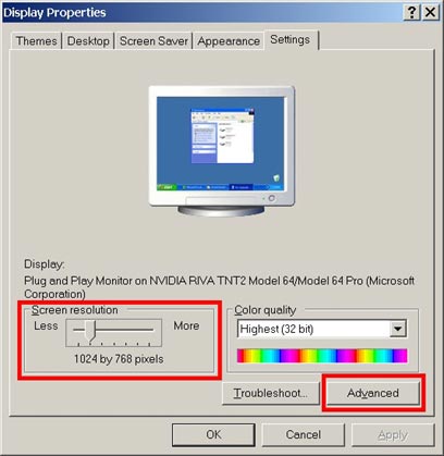 המסכים ה"רגילים" (מסכי שפופרת, CRT) בגודל 17 אינץ', הם הנפוצים ביותר היום, ולמסכים האלה הרזולוציה האופטימלית היא 1024x768. ברזולוציה נמוכה יותר, האלמנטים הגרפיים על המסך יהיו גדולים יותר, אבל יהיה "פחות מקום" וחלק מאתרי האינטרנט אליהם תגלשו, למשל, יחרגו מגבולות המסך. ברזולוציה גבוהה יותר יהיה "יותר מקום" אבל הסמלים והתפריטים יהיו קטנים ויהיה לכם קשה יותר לראות אותם.