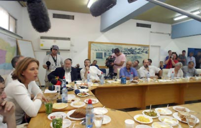 45 דקות צפונה משם, באולם ששימש פעם להופעות, שומעים חברי מועצת עיריית קריית שמונה את הסברי השרה על ההישג המדיני. לא כולם מסכימים וזאת לשון המעטה. כתבי העיתונות שואלים את אותן השאלות, השרה עונה את אותן תשובות, והכל נראה לקוח מתוך סרט. מישהו שואל את קב"ט משרד החוץ, שמעון בן שושן, אם ראה כבר מה עשתה הקטיושה לבית הכנסת של אבא שלו זכרו לברכה. בן שושן, בן הקרייה המתגורר כיום ברעננה, בוכה בפנים. הוא רוצה לראות, אבל לא יכול. השרה צריכה להגיע עוד היום לכרמיאל, לנהריה ולקריות.