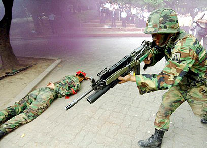 צבא דרום קוריאה בתרגיל, היום. נועד לצרכים הגנתיים (צילום: איי.אף.פי)