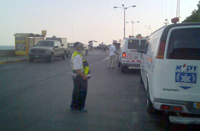 אמבולנסים במסוף טאבה (צילום: חיים וינגרטן, זק"א)
