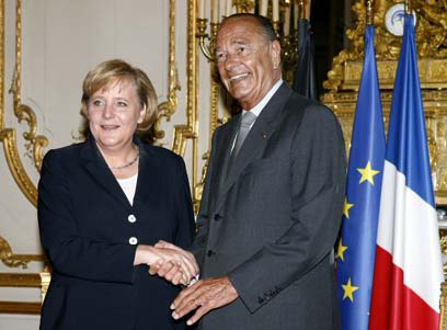 שיראק ומרקל. "לטפל באופן מעמיק בקונפליקט" (צילום: סי"צ)