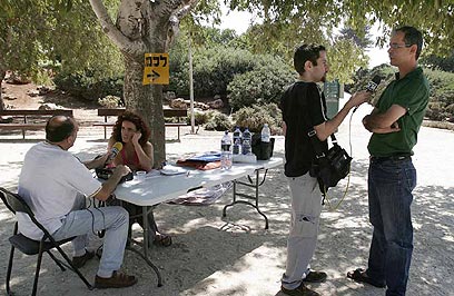 בימים שבהם מחאות פוליטיות על רקע המלחמה בלבנון שוטפות את הבירה, חזרו חולי סרטן המעי הגס לאותו המקום שבו שבתו לפני כשלושה חודשים - גן הוורדים שמול הכנסת. בניגוד לפעם הקודמת, שבה מאות אזרחים הגיעו לתמוך בהם מדי יום, הבוקר היו במאהל המחאה שני שובתים בלבד - שירה כלפון, ששני הוריה נפטרו מהמחלה, וישראל רויימי, שאשתו בת ה-35 אמורה להתחיל את הטיפול בארביטוקס בעוד כשבוע אך ספק אם תוכל לעשות זאת מאחר וכספם אזל. לזוג רויימי ילדה בת שש ותאומים בני שנה וחצי.