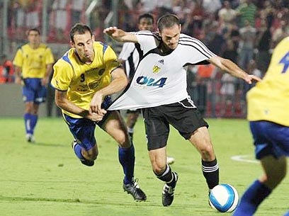 זנדברג כובש את שער הניצחון הנהדר, יחיאל מאחור (צילום: אלי אלגרט)