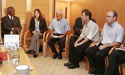 מזכ"ל האו"ם, קופי אנאן, פתח הערב (יום ג') את ביקורו בישראל בפגישה עם משפחות החיילים החטופים במלון "מצודת דוד" בירושלים. נציגי המשפחות שהגדירו את הפגישה כ"גורלית" וביקשו לקבל אות חיים מיקיריהם, יצאו מהפגישה מאוכזבים וסיפרו שלא קיבלו כל מידע חדש. בני המשפחות נועדו לפני כן עם שגריר ישראל באו"ם, דני גילרמן, כהכנה לפגישה עם אנאן.