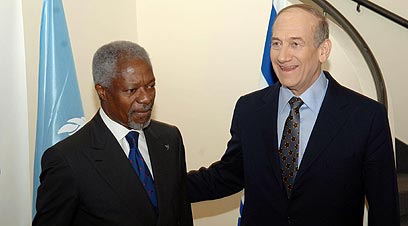 ראש הממשלה, אהוד אולמרט, נפגש הבוקר (יום ד') במעונו בירושלים עם מזכ"ל האו"ם, קופי אנאן. על הפרק: דרישת האו"ם להסרת המצור הימי והאווירי מעל לבנון, וסירובה של ישראל לעשות כן כל עוד לא הוחזרו החיילים החטופים, או לכל הפחות הועברו לידי ממשלת לבנון.