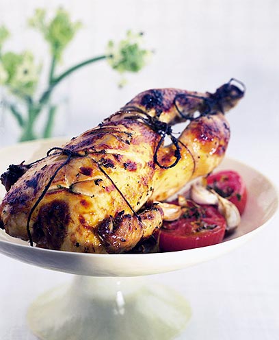 תוספת מומלצת לעוף: חוצים עגבניות לרוחבן ובוזקים עליהן מעט סוכר חום, שום כתוש ומעט רוזמרין קצוץ. חותכים כיפות של כמה ראשי שום, מטפטפים עליהם שמן זית ובוזקים מלח גס. חותכים בבצל שלם (כולל הקליפה) חתך עמוק בצורת צלב. עכשיו מניחים את כל אלה בתחתית של תבנית העוף (את העגבניות רצוי להוסיף ברבע השעה האחרונה, כדי לא להגזים באפייתן). מתקבלת תוספת נפלאה לעוף הזהוב, המזוגג.