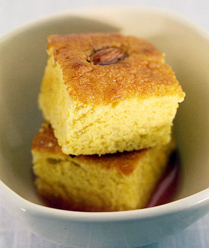4. מערבבים את הסוכר המומס עם מי הוורדים ומברישים את העוגה בנוזל בעודה חמה (כך הרוטב יחלחל טוב יותר וירטיב את העוגה). מגישים בטמפרטורת החדר.