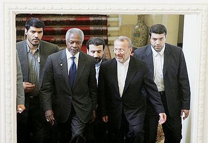 הארכּה שניתנה על ידי האיחוד האירופי לאיראנים נעשתה במקביל לביקורו היום של מזכ"ל האו"ם, קופי אנאן, בטהרן. בראיון שיפורסם במלואו מחר בעיתון הצרפתי "לה-מונד", אומר המזכ"ל כי אינו מצדד בהטלת סנקציות כפיתרון למשבר. "יש זמנים שבהם מעט סלבנות היא הרבה יותר יעילה", אמר אנאן. "אנחנו צריכים להשתמש בכך לעתים קרובות יותר".