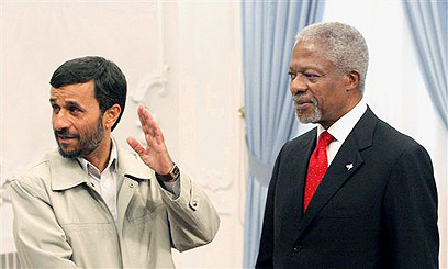 לפני שנה ביטל אנאן את פגישתו עם אחמדי-נג'אד, בשל התבטאויותיו הקשות של נשיא איראן שקרא להשמדת ישראל. מזכ"ל האו"ם התייחס לביטויים הפוגעים בזכר השואה, הנשמעים באיראן: "בנושא השואה, הזכות לחופש קיימת, אבל היא צריכה להיות עם שיקול דעת ושיפוט. הטרגדיה של השואה לא ניתנת להכחשה. אנחנו צריכים להכיר ולקבל זאת וללמד ילדים מה קרה במלחמת העולם השניה, כדי שזה לא יחזור. צריך להיזהר כי מילים עלולות לפגוע".