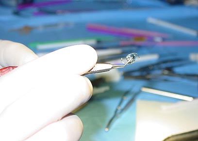 רגע לפני השתלת העדשות בעיניו של צ'יטה (צילום: ד"ר צחי אייזנברג)