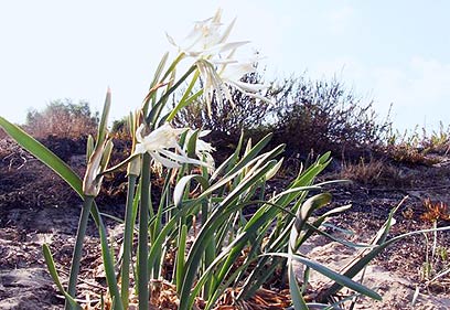 חבצלות החוף העדינות שמתחילות לפרוח בסוף אוגוסט, לאורך רכסי הכורכר בארצנו, הן חלוצות מבשרי היורה, על פי הבוטנאי עוזי פז. הפרחים הלבנים והגדולים של החבצלת נפתחים רק לעת ערב כדי להימנע מרסס המלח שנושאת איתה הרוח המערבית הנושבת מן הים, בדרך כלל, בשעות היום. גם הפרח הזה פורח זמן רב, לעיתים חודשיים, לפני יציאת העלים.