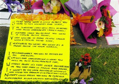 ארווין, המנחה הפופולרי של התוכנית "צייד הקרוקודילים", קנה את שמו בקרבה מסוכנת לתנינים, נחשים וחיות אחרות. " תמיד אמרנו שאם הוא צריך למות, זה יהיה בים", אמר סטיינטון.
