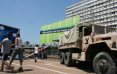 ההכנות לעצרת בכיכר רבין (צילום: עופר עמרם)