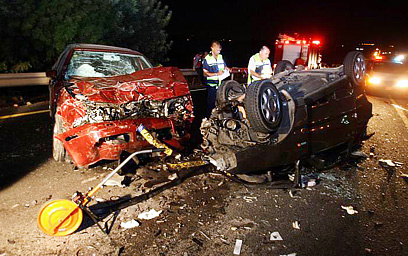 5 הרוגים ו-5 פצועים. שתי המכוניות המרוסקות (צילום: חגי אהרון)