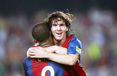 מסי ואטו חוגגים עוד הצגה של בארסה, הערב בקאמפ נואו (צילום: רויטרס)