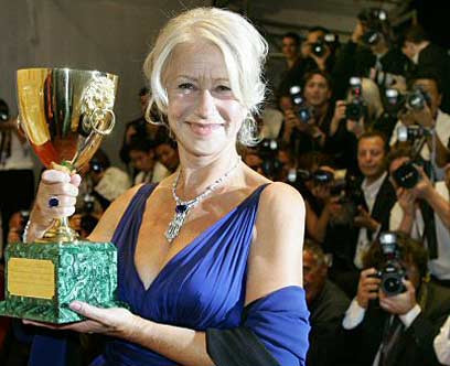 הלן מירן אוחזת בפרס עבור השחקנית הטובה ביותר. (צילום: רויטרס)