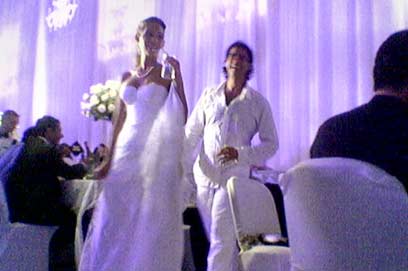 האורחים המכובדים הוזמנו לשעה שבע בערב, ובאמת בשבע ועשרה כבר התייצב הזוג מתחת לחופה על רקע תפאורה שמיימית בצבעי כחול לבן ומסכי VJ בכל פינה. מלבד אורקסטרה מיני-פילהרמונית נתנה שואו מוזיקנטי גם דנה אינטרנשיונל, שזימרה את "דיווה" והקדישה אותו לאמא יהודית. מסיבת הריקודים שנפתחה בחצות נמשכה עד השעה הקטנה ארבע בבוקר.
