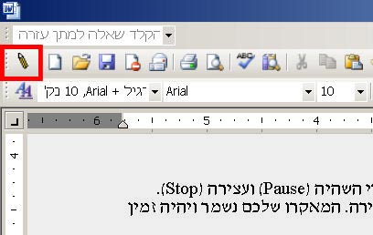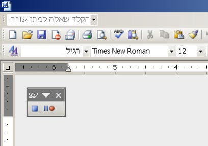 הקליקו על הכפתור הקצה ואז על סגור. בפינת המסמך הפעיל יופיע סרגל הכלים של הקלטת מאקרו.